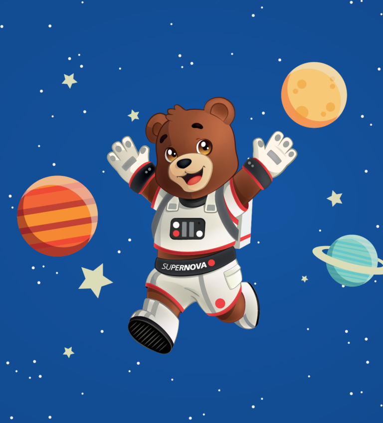 Z veseljem ti predstavljamo Cosma, pustolovskega in prijaznega medgalaktičnega medvedka, ki je uradna maskota nakupovalnih centrov Supernova!